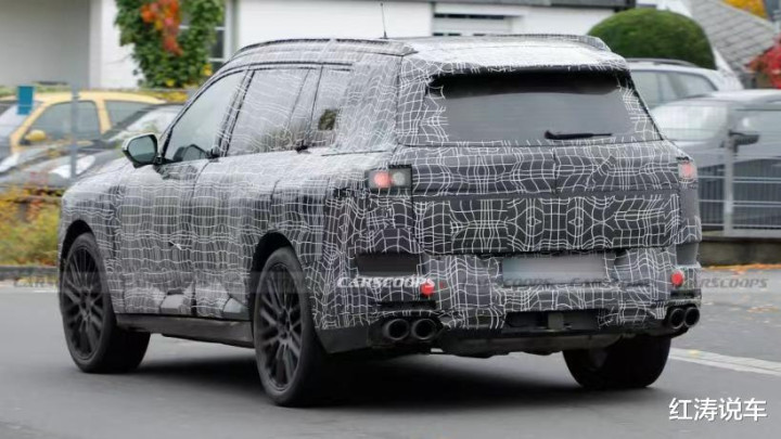 全新一代宝马X7的车身轮廓和现款车型区别不是很大,看起来简洁舒展,D柱位置的“霍夫迈斯特拐角”做了强化,而新车取消了传统样式的门把手,取而代之的是位于车窗窗线处的半隐藏式门把手,有点类似于某品牌超跑的设计,不仅优化空气动力学,还让车侧变得更显干净利落,就不知道真正量产版会不会进行修改,尾部最吸引人眼球的莫过于底部粗大的双边四出式排气,一看就是个“不好惹”的大块头,而红色尾灯点亮效果也很不错。