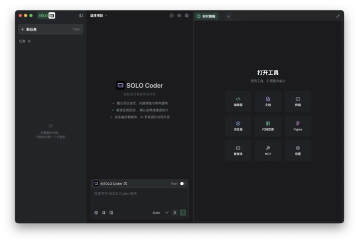界面方面,TRAE 中国版 SOLO 模式采用全新三栏布局,左侧是新增的多任务窗口,中间是对话流,右边为工具面板。SOLO 支持多任务并行,同时开发不同功能模块。
