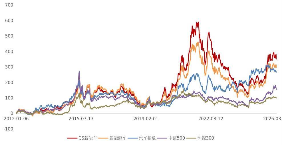 基期以来(2011.12.31-2026.03.23),该指数区间涨跌幅329.98%、区间年化收益率11.14%、年化夏普比率0.50,表现均优于同期国证新能源车指数和中证全指汽车指数。立足产业高质量发展新起点,抢抓全球电动化、智能化红利窗口期,新能源车ETF招商(159183)紧密跟踪相关指数。