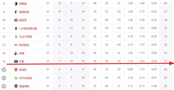 戏剧性的是,也正是这个0-5打醒了汉堡,接下来汉堡2-1战胜海登海姆,0-0打平柏林联合,4-0大胜美因茨,一举收获7分。从此以后,汉堡又找到了德甲的生存之道,这就是能赢的比赛一定想办法赢下来,不能赢的比赛就有所保留,输了也行。凭借这个法则,他们几乎一个月赢一场,在今年3月底的时候,汉堡积30分,居然排在了第12名,比降级区多了6分,看上去他们已经稳了。