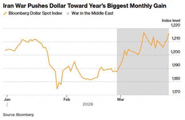 中东战争推动美元创年内最大月度涨幅